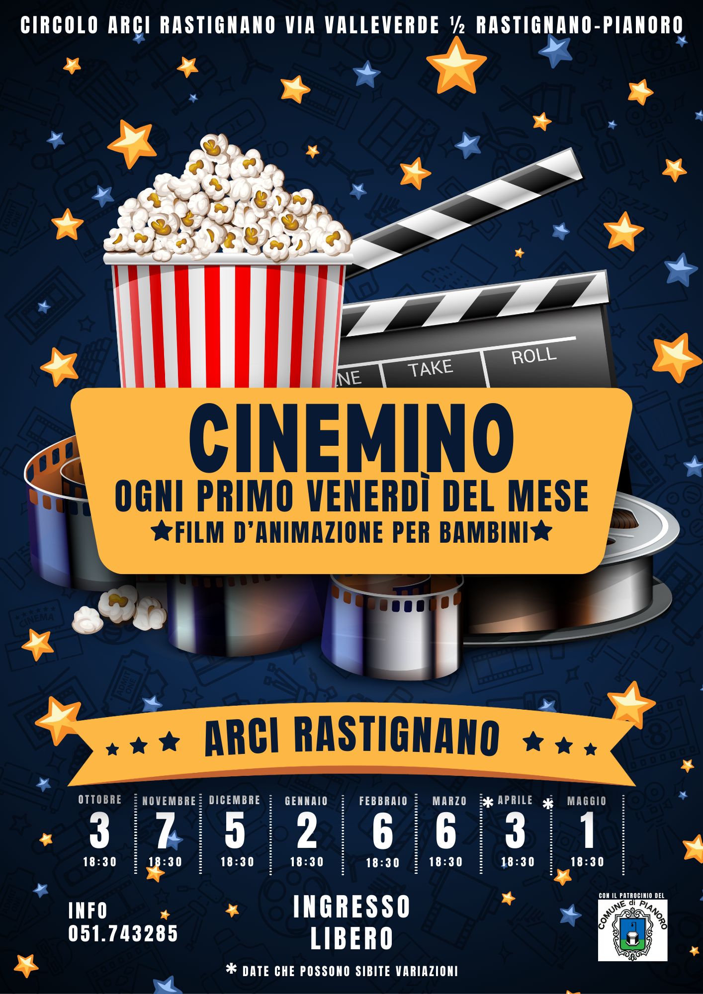 Cinemino ogni primo venerdì del mese, film d'animazione per bambini/e. Presso il Circolo Arci Rastignano in via Valleverde ½, Rastignano-Pianoro