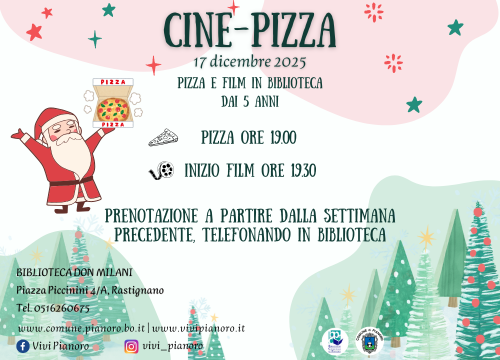 Alle ore 19:00 si mangia la pizza e alle ore 19:30 inizia la proiezione del film.