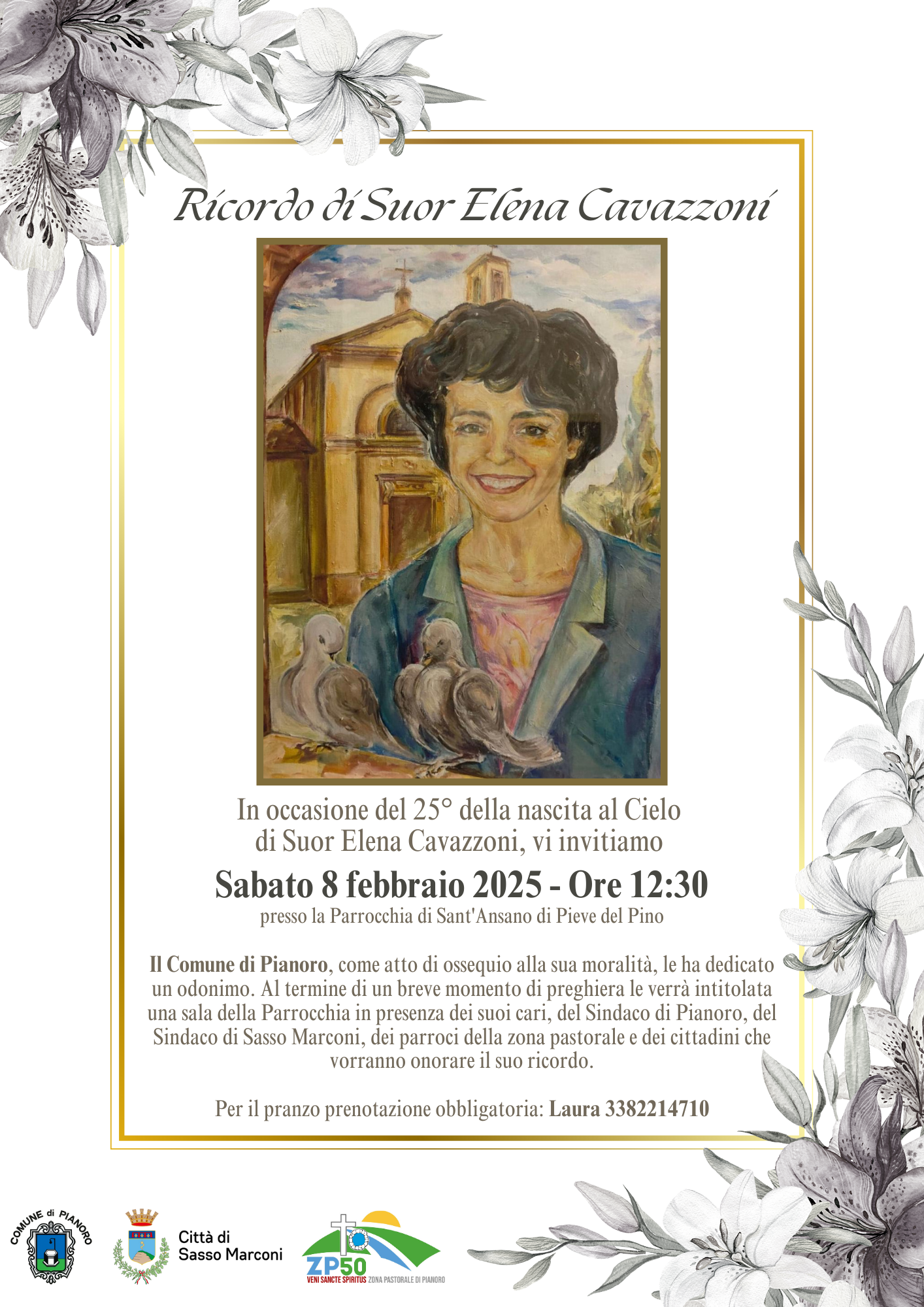 In occasione del 25° della nascita al Cielo di Suor Elena Cavazzoni, vi invitiamo a partecipare alla funzione commemorativa in memoria di Suor Elena Cavazzoni.
